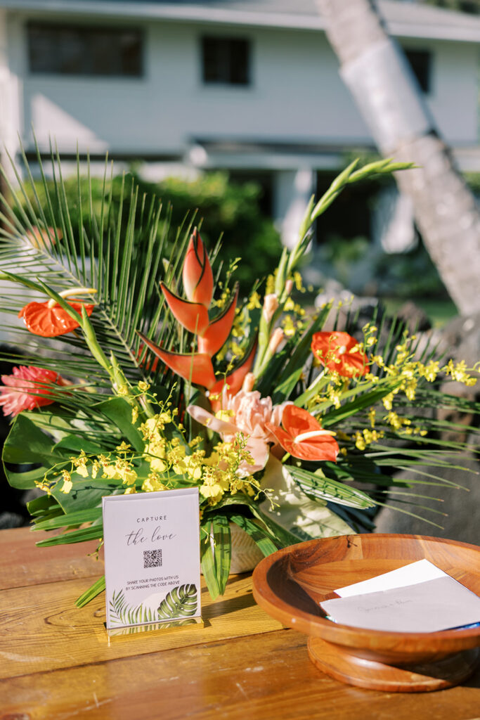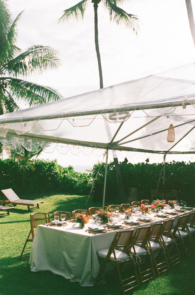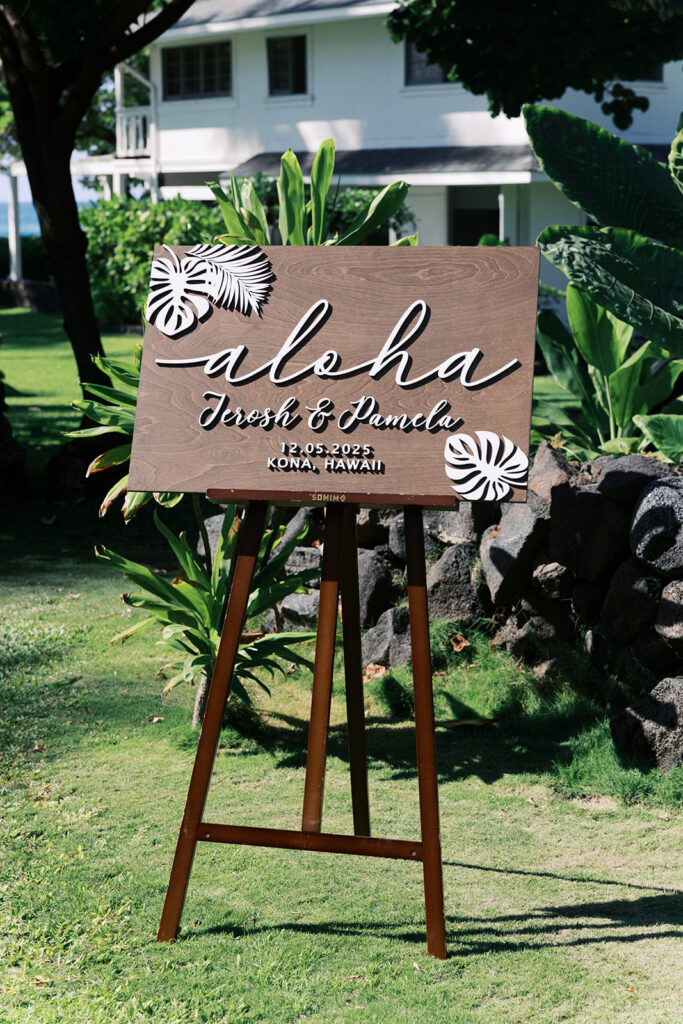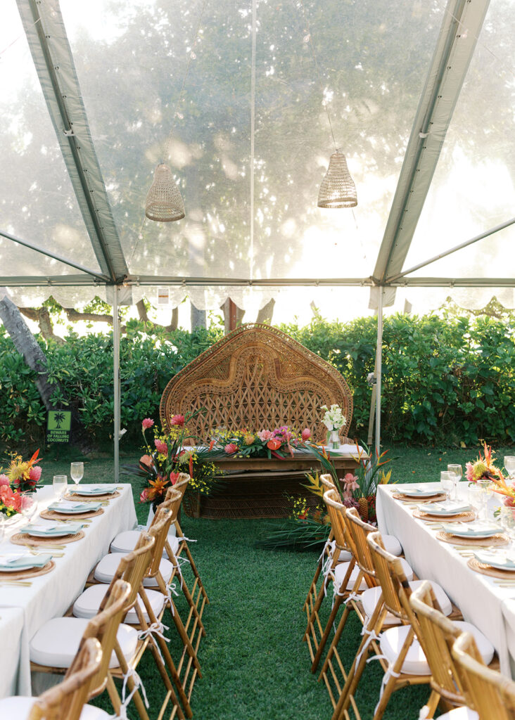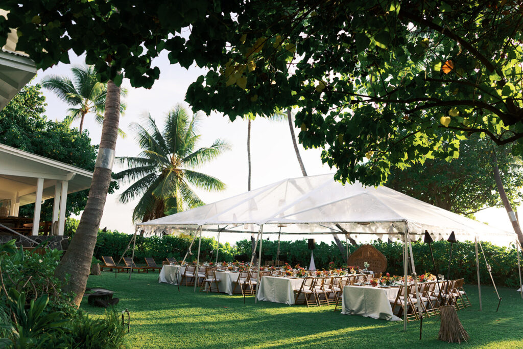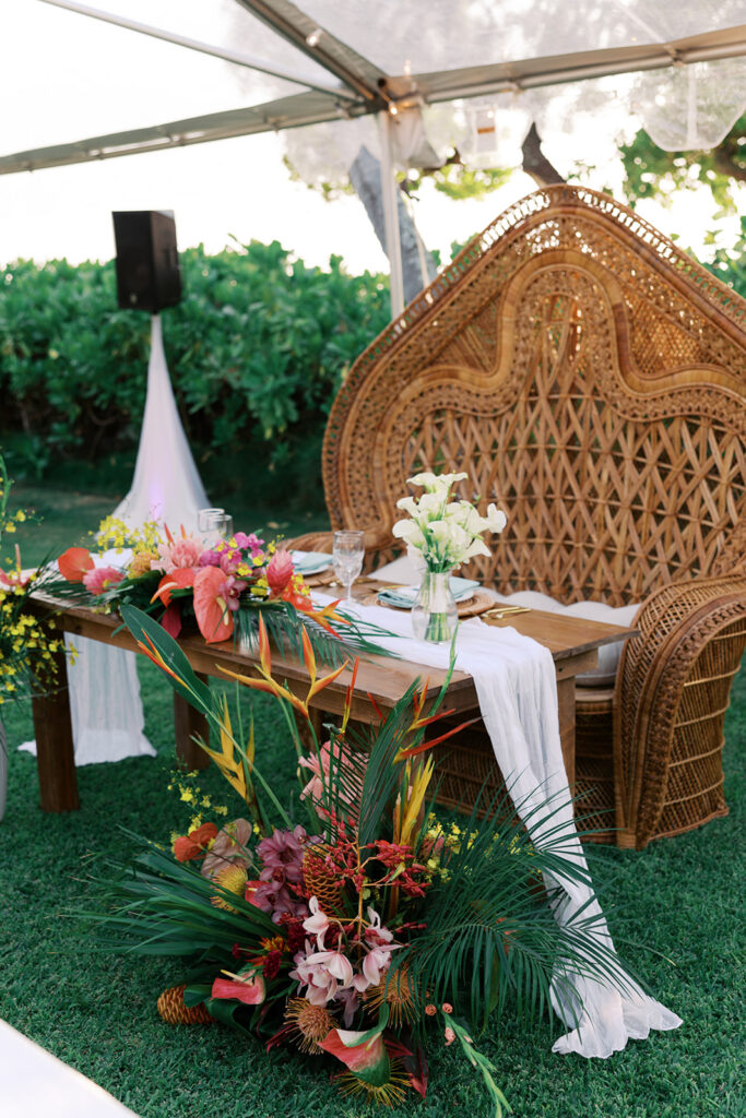Florals: Grace Flowers Hawaii, Rental: Hawaii Island Events, Venue: Kona Beach Houses, Photography: Candencia Photography, Food: Paina Pantry, Hair and Makeup: Golden Hour Beauty, Planning, Coordination and Design: The Chapter of Love Hawaii Weddings