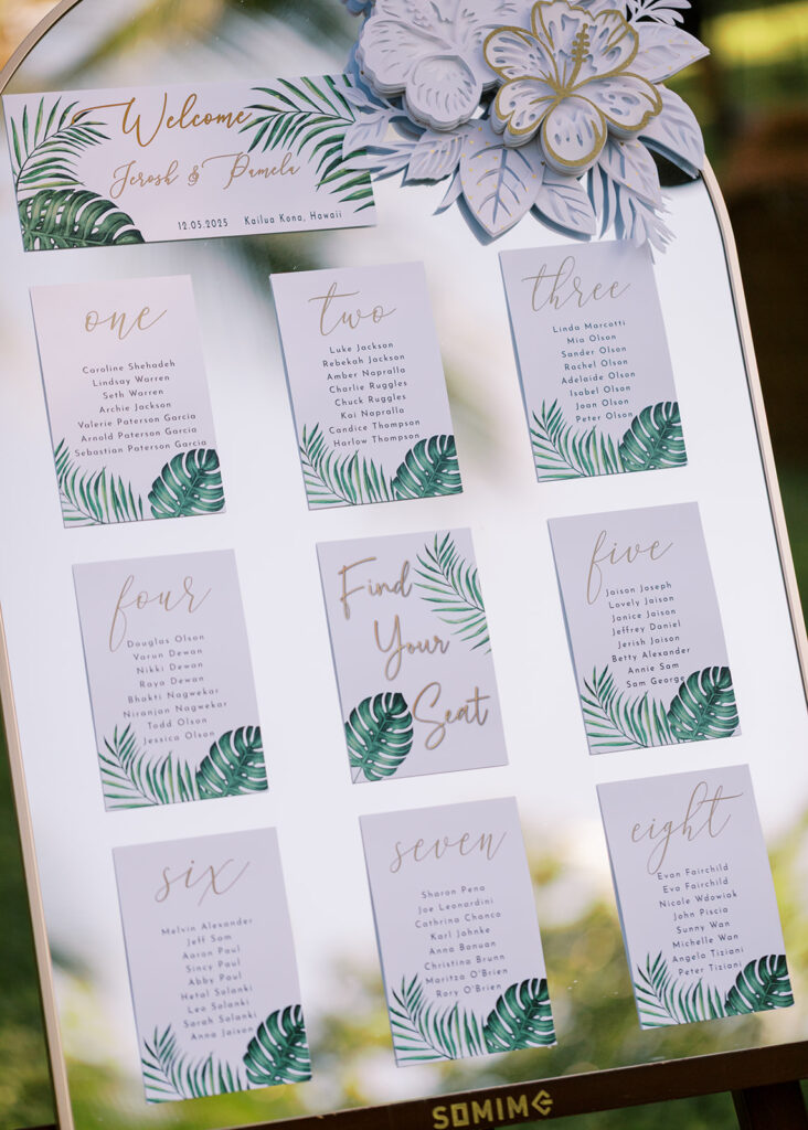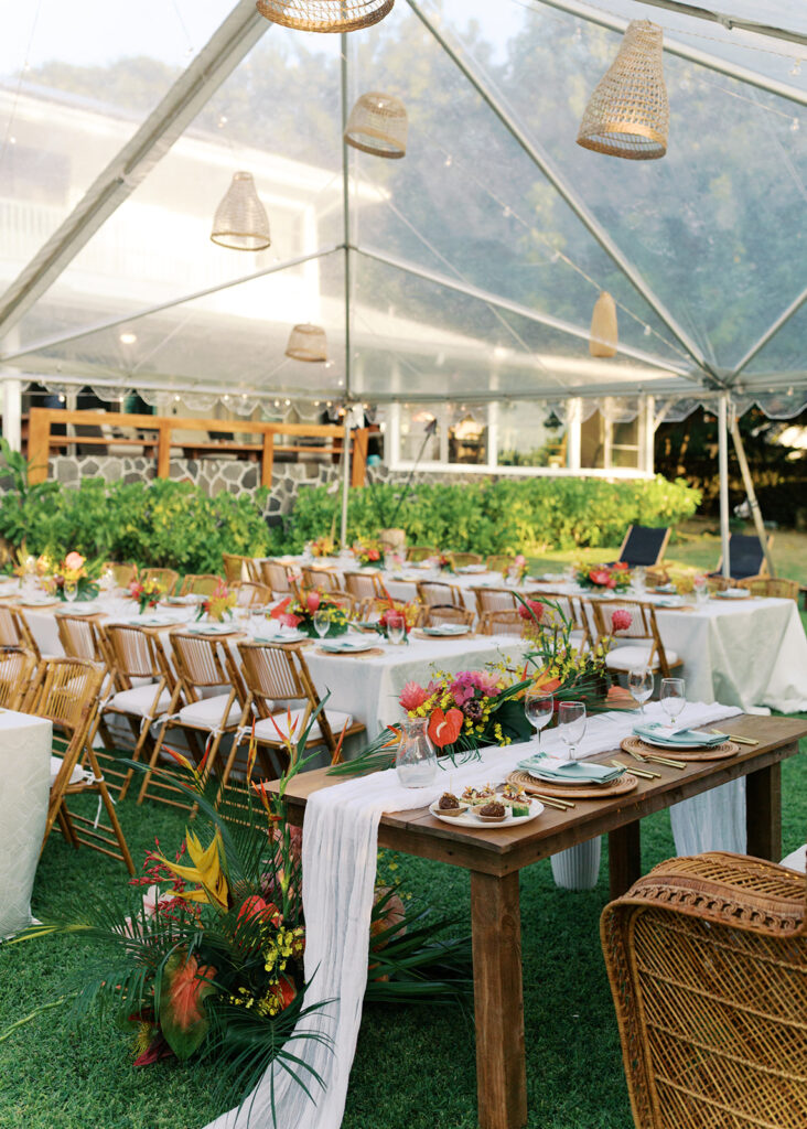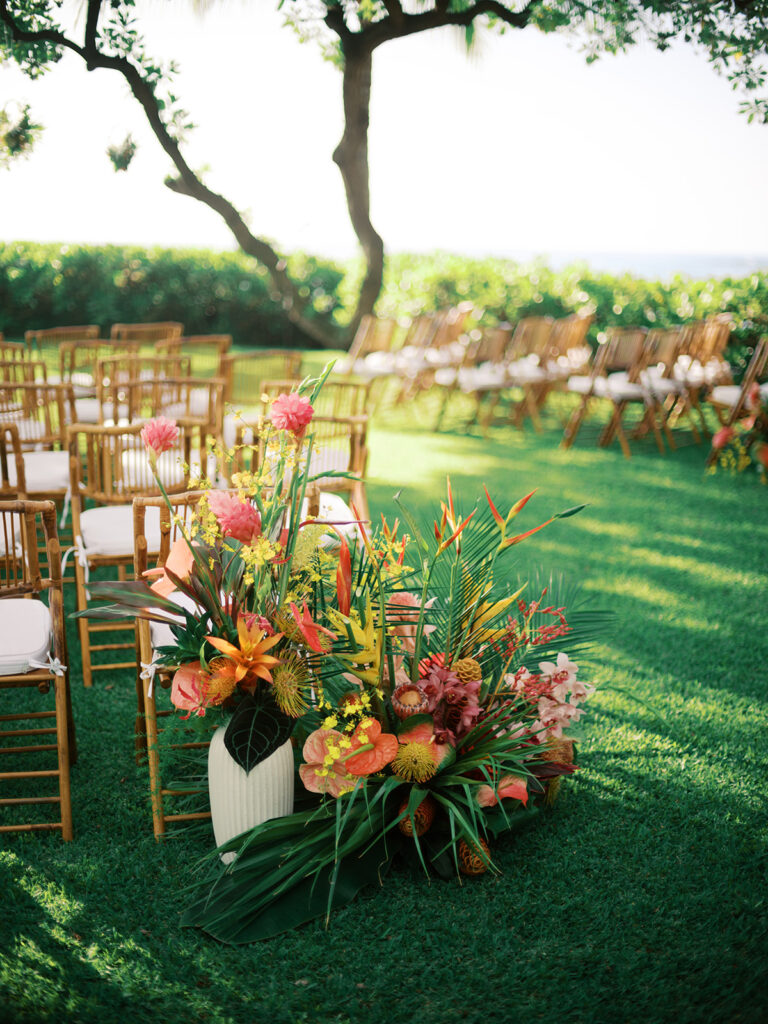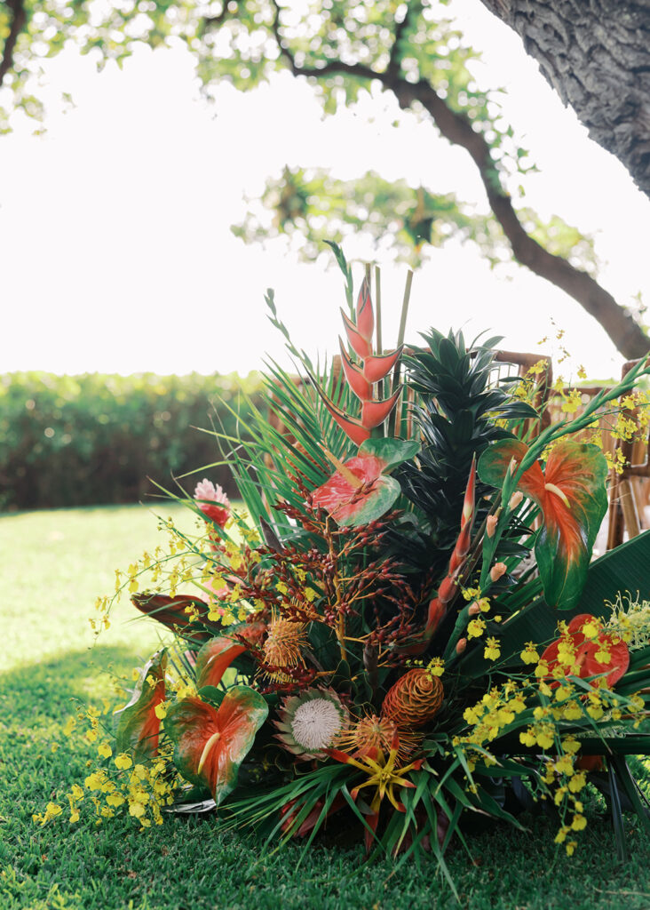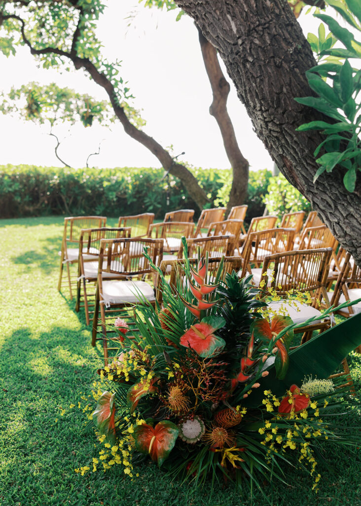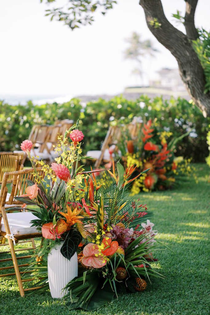 Florals: Grace Flowers Hawaii, Rental: Hawaii Island Events, Venue: Kona Beach Houses, Photography: Candencia Photography, Food: Paina Pantry, Hair and Makeup: Golden Hour Beauty, Planning, Coordination and Design: The Chapter of Love Hawaii Weddings