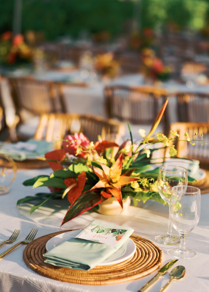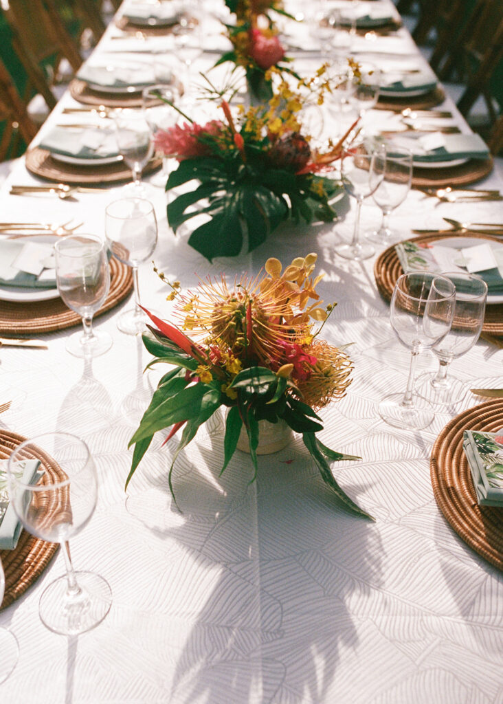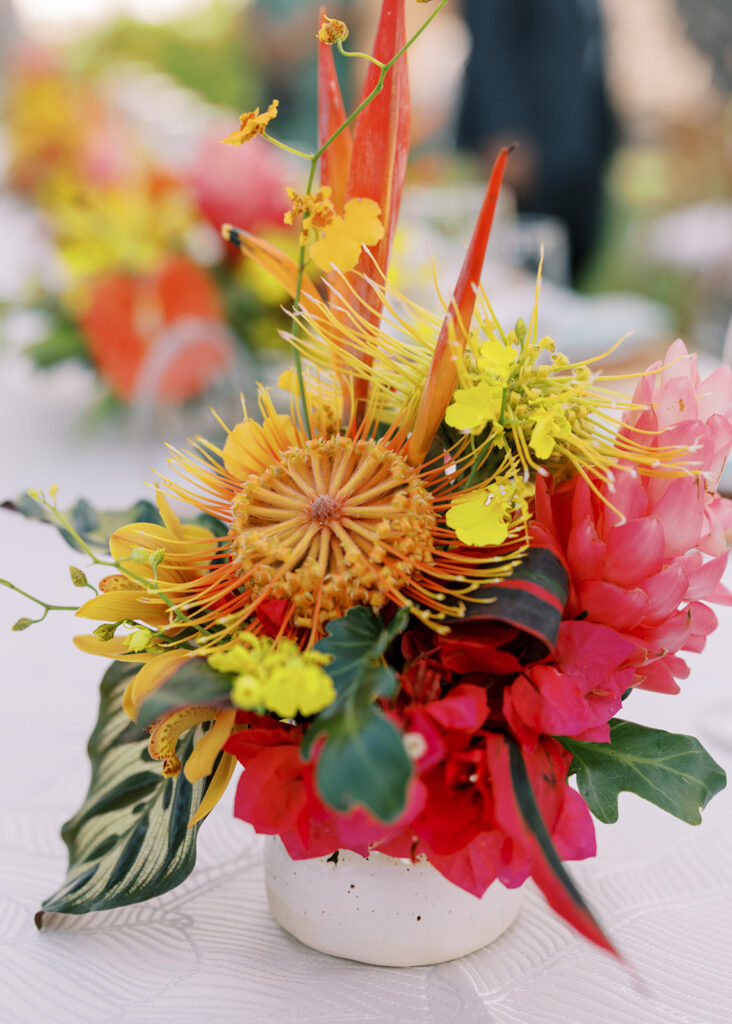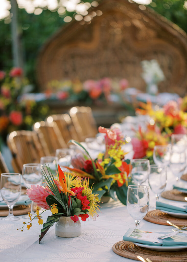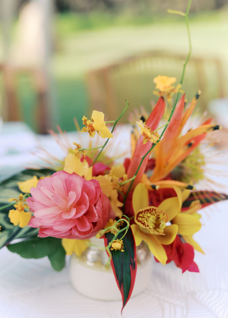 This has to be one of my all time favorite events -the bold tropical flowers, the perfect lighting, the vibrant, elevated food and the perfect Island music -it was magical!