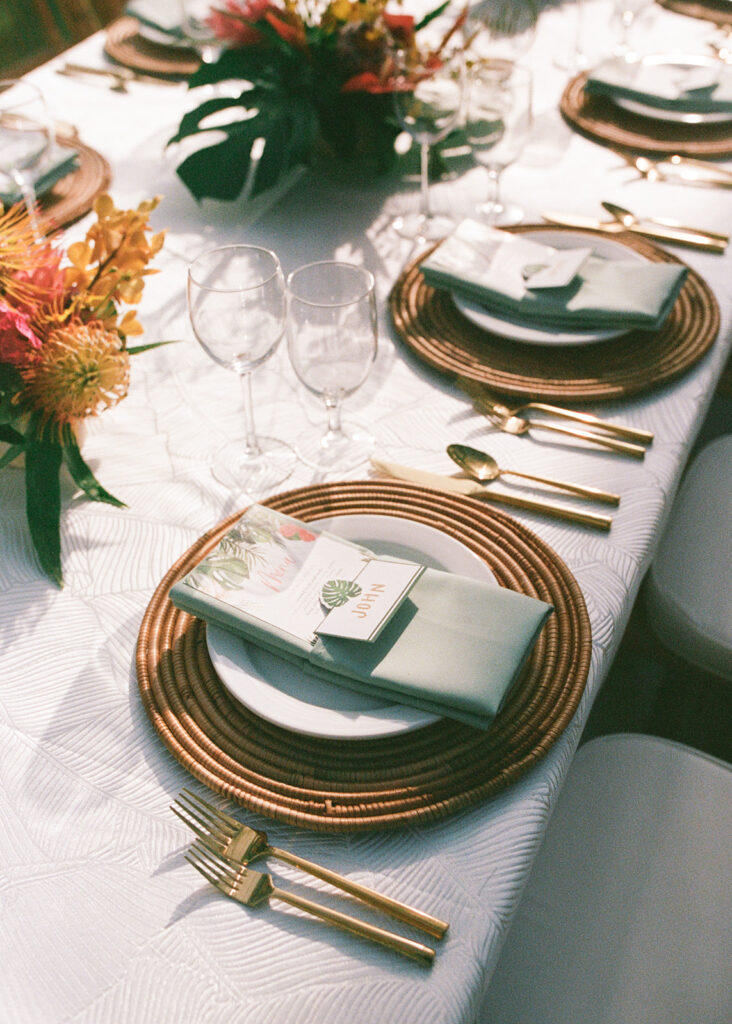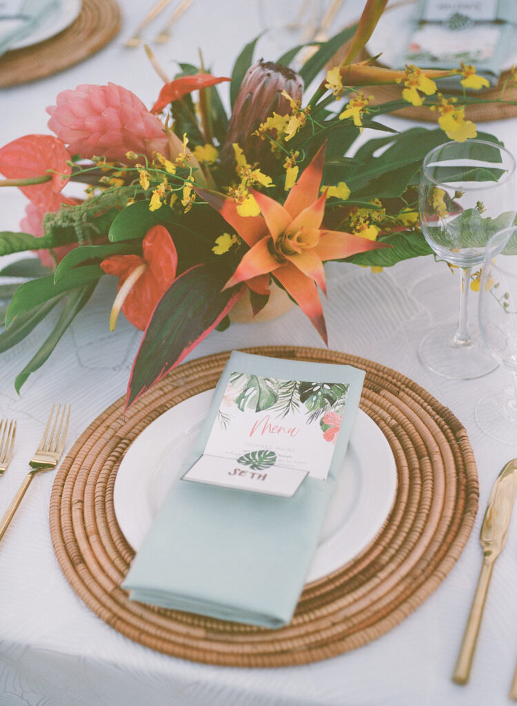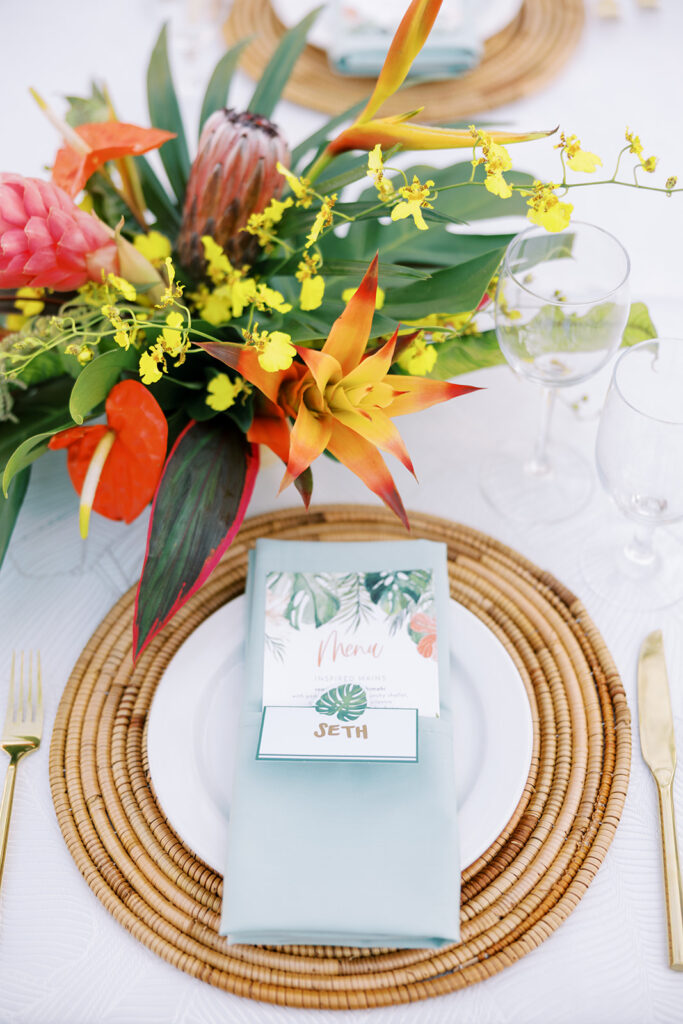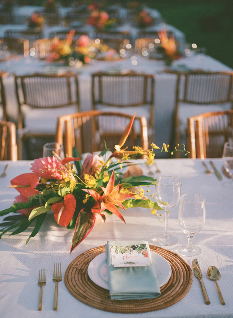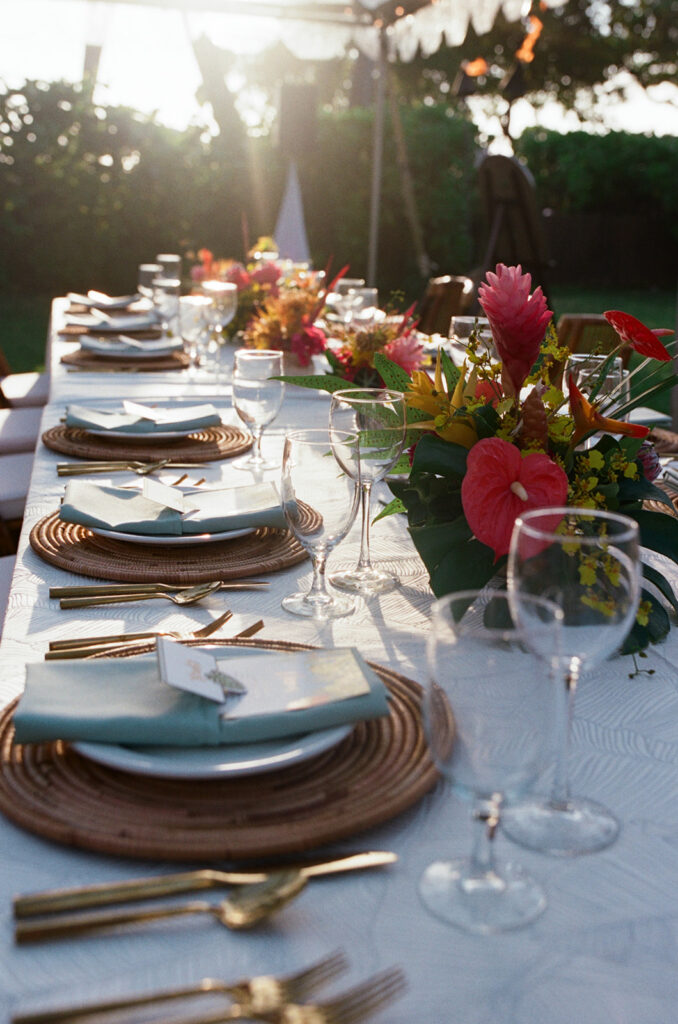 This has to be one of my all time favorite events -the bold tropical flowers, the perfect lighting, the vibrant, elevated food and the perfect Island music -it was magical!