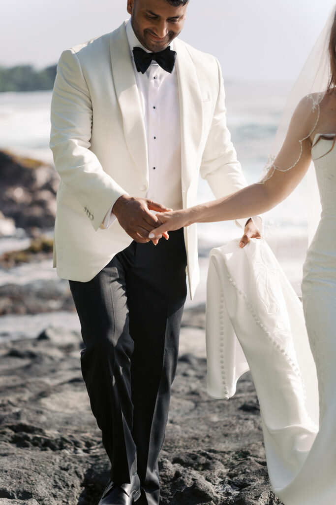 Kona Beach Houses is a stunning private estate wedding venue on the Big Island perfect for an understated yet sophisticated and authentic Hawaii Island wedding. These photos from Cadenica Photography really showcase it’s charm and appeal! Be sure to notice the absolutely gorgeous family style food prepared by Paina Pantry!